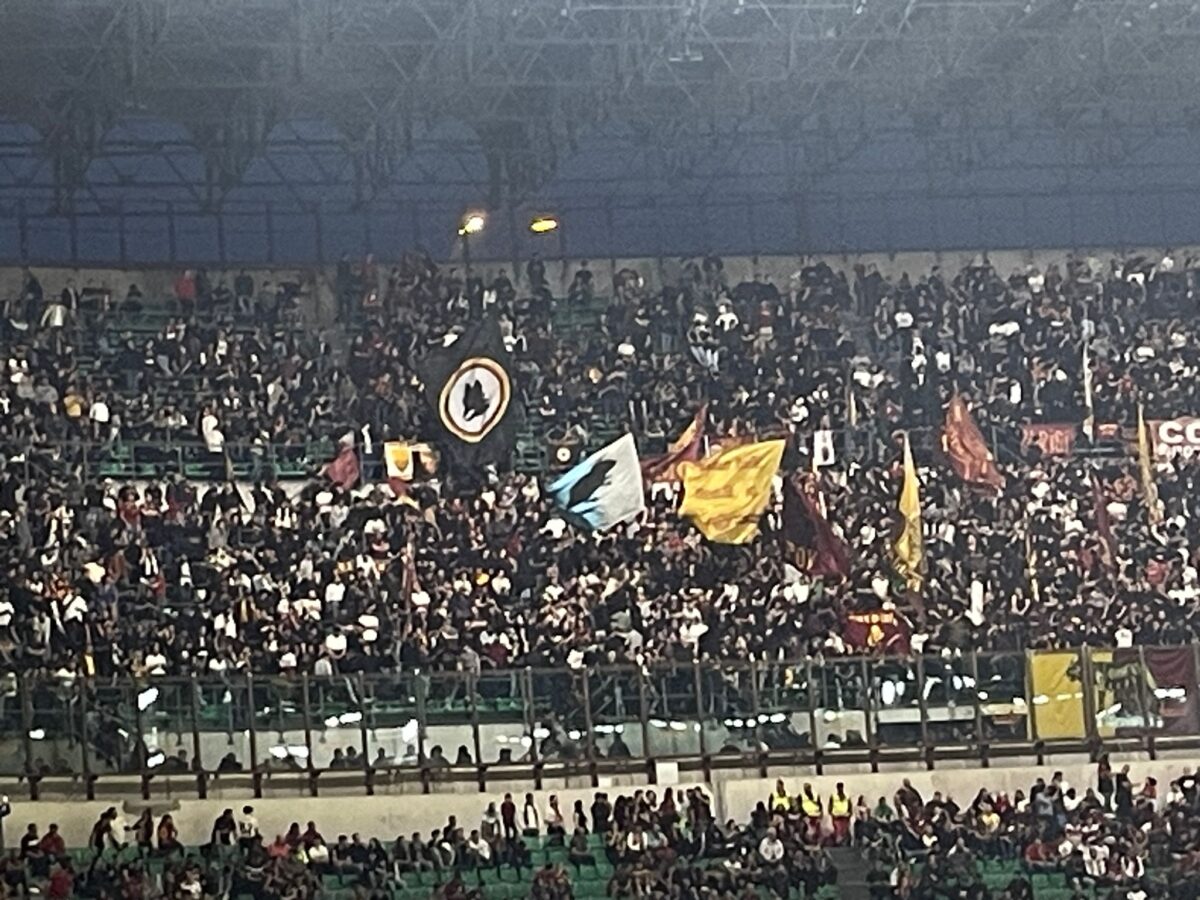 Al momento del loro arrivo a San Siro, i tifosi giallorossi erano tutti concentrati per la gara e speranzosi di veder vincere la propria squadra. Portare anche la "bandiera con il sorcio" è un modo per segnalare la propria vicinanza a Mancini, che dovrà pagare una multa di 5mila euro per il gesto ritenuto troppo sopra le righe.