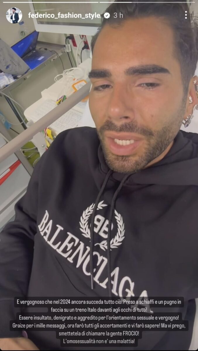 Secondo quanto raccontato da Federico Fashion Style, il giovane parrucchiere era sul treno Italo quando un gruppo di persone omofobe si è avvicinato e lo ha iniziato a picchiare davanti a tutti. Nello specifico ha ricevuto schiaffi e pugni in faccia. Non solo, è stato anche insultato, denigrato e aggredito per l'orientamento sessuale.