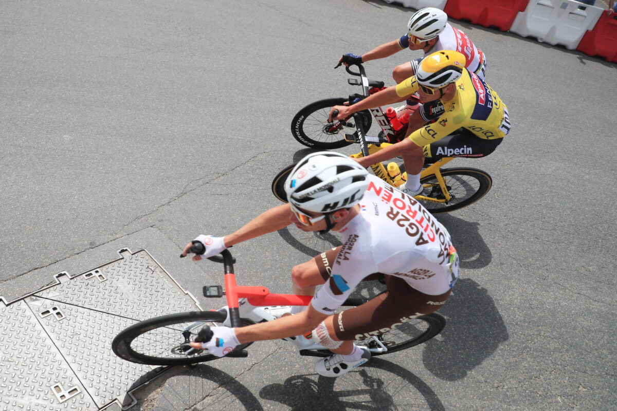A circa 33 chilometri dal traguardo, è stata la volta di Wout Poels (Bahrain Victorious) di attaccare, seguito da Juan Pedro Lopez (Lidl-Trek). Anche se la Decathlon Ag2r La Mondiale ha cercato di limitare il divario, Poels è riuscito a guadagnare un vantaggio significativo. Tuttavia, durante la discesa, Carlos Verona è tornato in testa al gruppo insieme ad Aurélien Paret-Peintre, riportando il gruppo vicino a Poels.