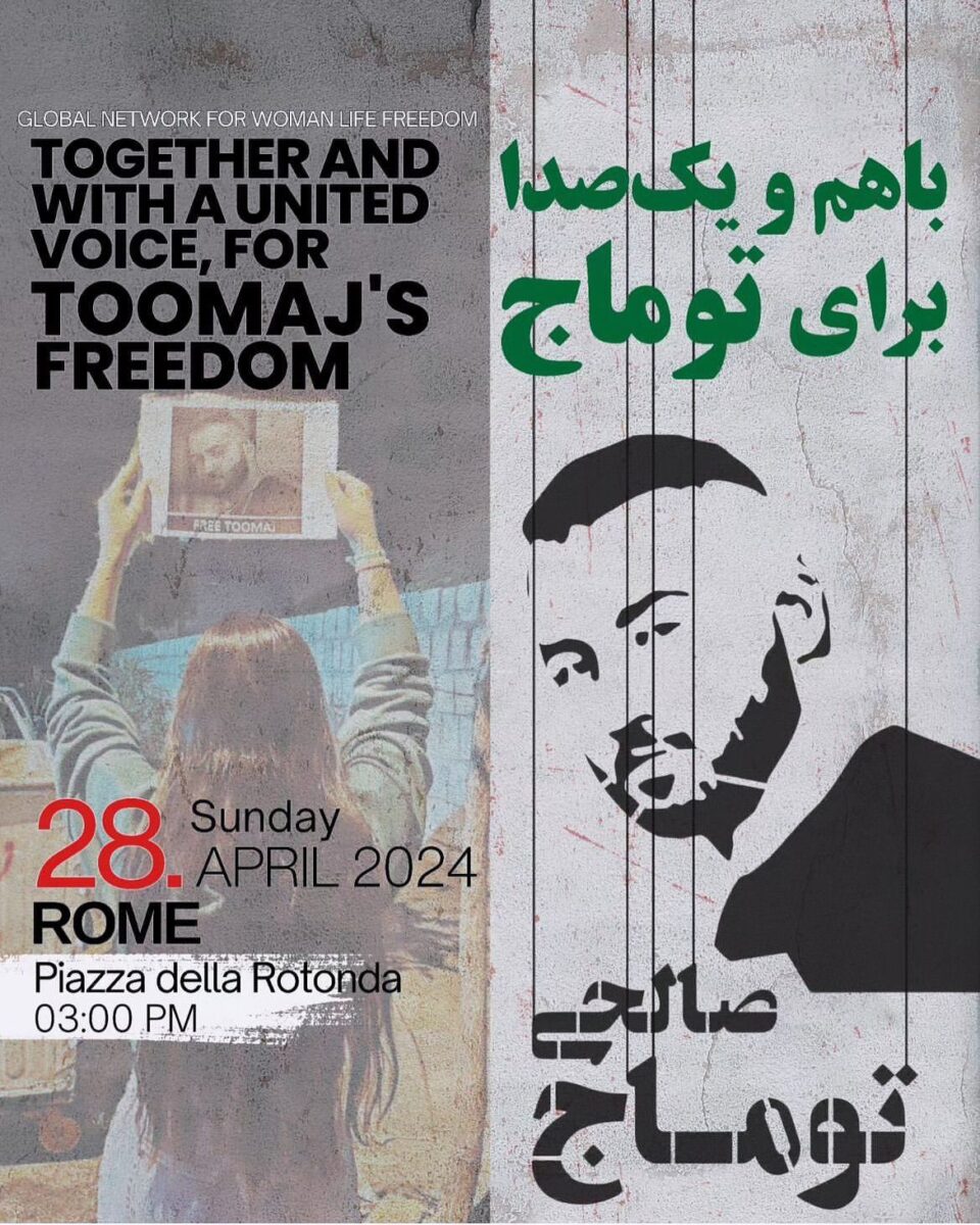 A Roma, domani 28 aprile, a partire dalle ore 15:00, partirà il corteo in solidarietà di Toomaj Salehi da Piazza della Rotonda.