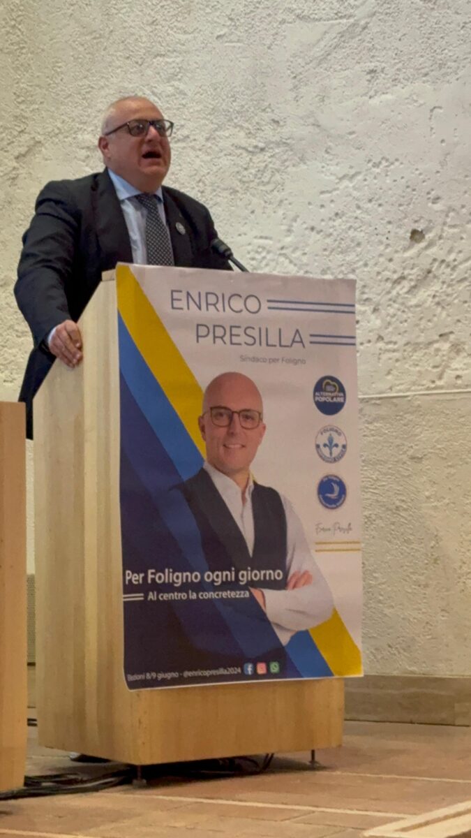 Ed è il caso di Enrico Presilla, giornalista professionista, uomo molto vicino al mondo cattolico, il candidato Sindaco di Alternativa Popolare per la città di Foligno, la terza più importante dell'Umbria dopo Perugia e Terni. E, appena rientrato dal Molise, il vice-Sindaco di Terni e candidato alla presidente della Regione Umbria Riccardo Corridore lo presenta ufficialmente e ne tesse le lodi perché "incarna perfettamente le idee e i progetti" di Alternativa Popolare.