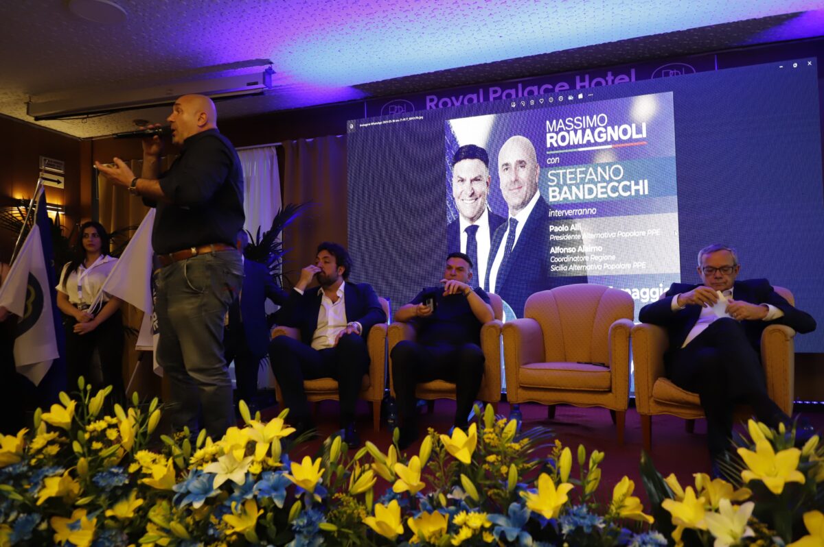 Dopodiché l'intero gruppo si è spostato all'interno del Palace Hotel di Messina dove c'è stato un evento pubblico a cui hanno partecipato tantissime persone che hanno assistito in religioso silenzio mentre parlavano Stefano Bandecchi, Paolo Alli e anche il candidato di Alternativa Popolate Massimo Romagnoli.