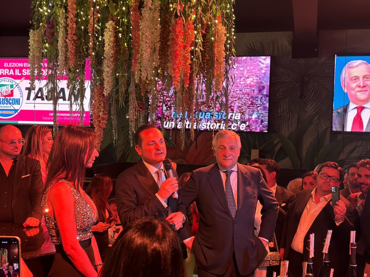 Tajani parla ai fedelissimi del partito, in un clima caratterizzato dal ricordo del fondatore di Forza Italia, Silvio Berlusconi, la cui immagine compare ripetutamente sugli schermi presenti nella sala.