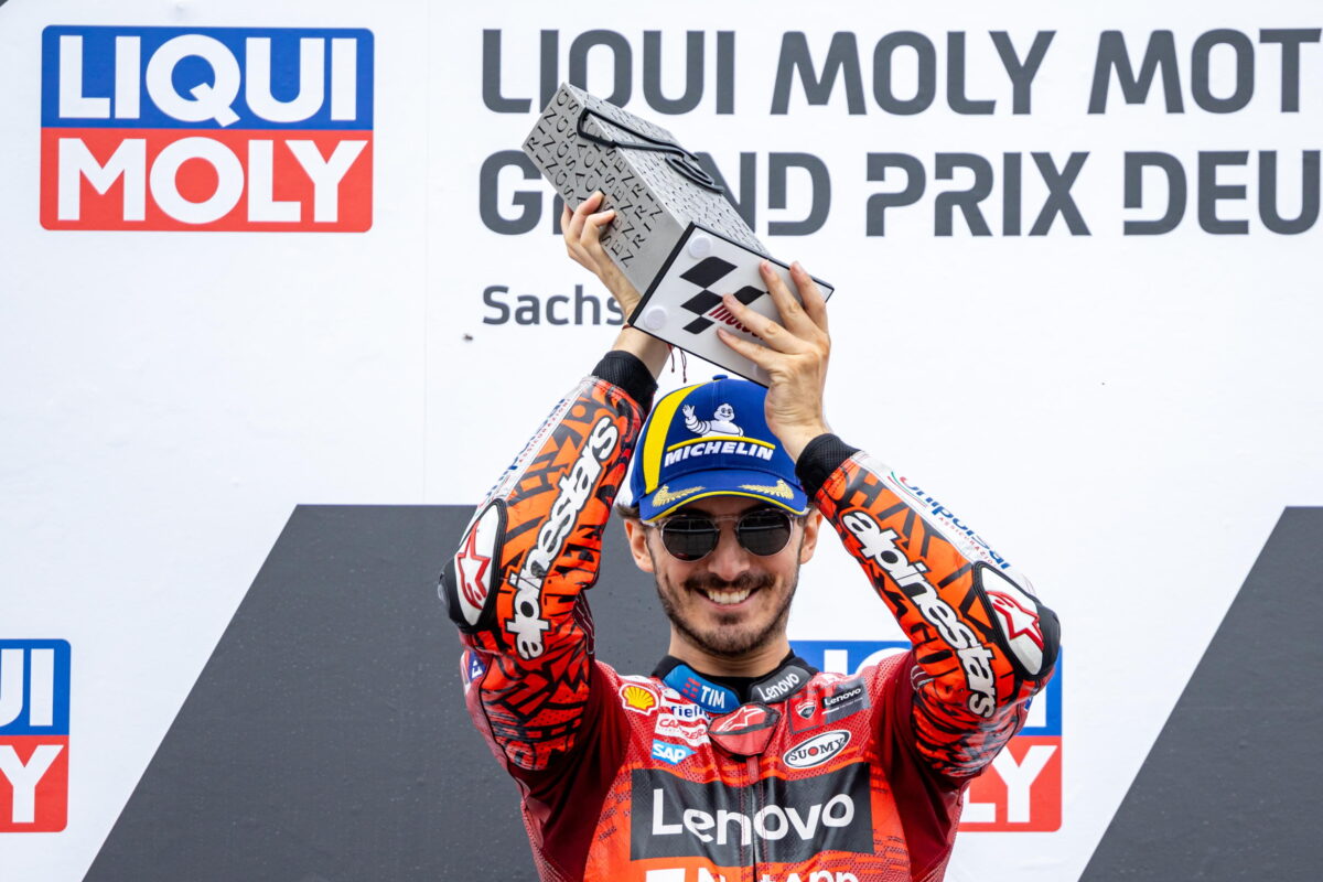 Al Sachsenring Pecco Bagnaia ha vinto ancora una volta trovando 4 successi consecutivi dopo Montmelò, Mugello e Assen. Il pilota campione del mondo però ha battuto un record ed è entrato nella storia della MotoGP. Bagnaia, infatti, ha trovato il record di vittorie con la Ducati: nessuno aveva mai raggiunto quota 24. Superato infatti anche Casey Stoner che con la Rossa ha fatto benissimo e ha vinto tanto. Per Bagnaia però non dovrebbe essere finita qui dato che è in grande forma e che dovrà lottare tanto per vincere il Mondiale.