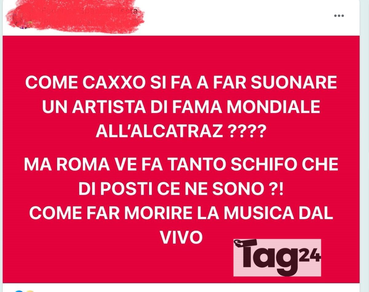 Una fan del gruppo Facebook, ha lamentato una location a sua detta "sbagliata" per ospitare un rocker di caratura così importante, lasciandosi scappare anche alcuni epiteti.