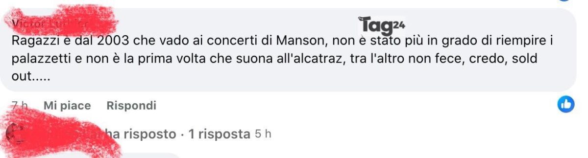 "Guardate il lato positivo, sarete talmente in pochi che potrete guardarvi in faccia tra voi" scrive una ascoltatrice, mentre un altro sottolinea: "Manson è dal 2003 che non riempie i palazzetti e all'epoca non fece nemmeno sold out" citando il tour legato ad uno dei migliori album di Warner: "The Golden Age of Grotesque".