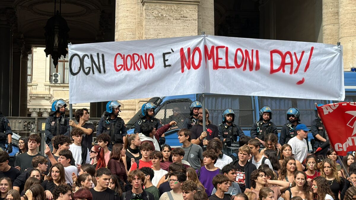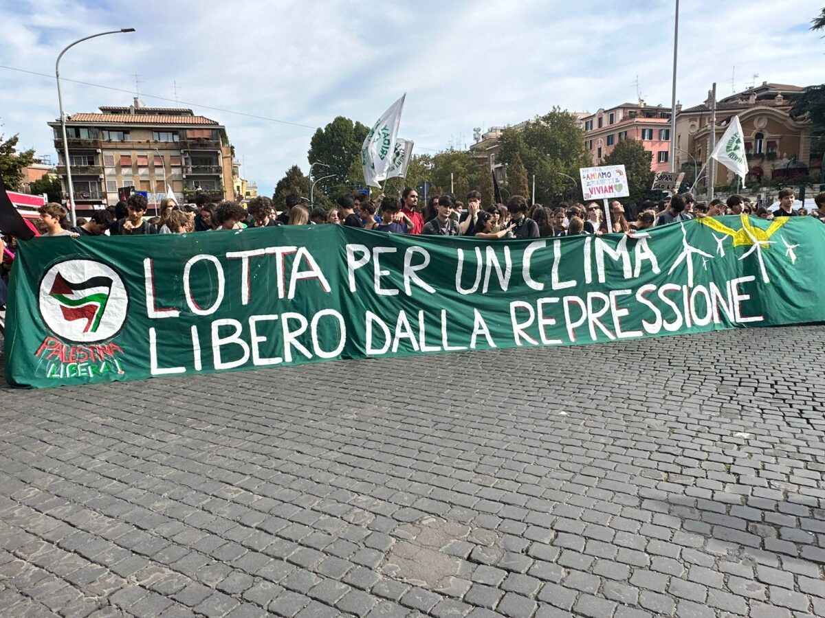 Roma si blocca di nuovo questa mattina 11 ottobre 2024: centinaia di studenti si sono radunati a piazza Ugo la Malfa per la manifestazione "Friday for Future". Focus del corteo è il cambiamento climatico, immancabili, però, anche le bandiere palestinesi che sventolano nel cielo azzurro della Capitale. Poi, lui, lo striscione "Ogni giorno è un no Meloni day".
