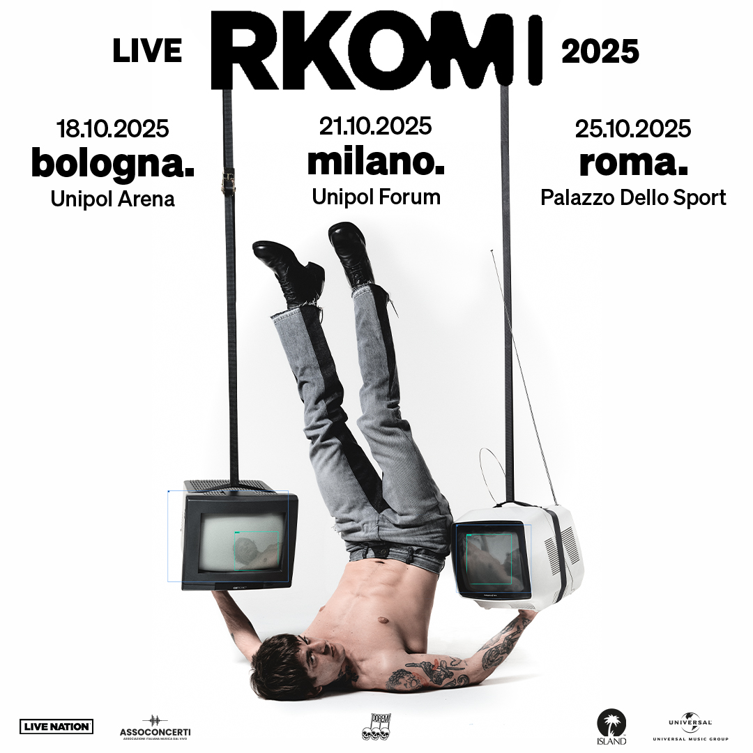 Dopo la presenza di Rkomi alla 75esima edizione della kermesse canora di mamma Rai, vedremo Rkomi dal vivo nei palazzetti: le date da segnare sul calendario sono quelle di sabato 18 ottobre 2025 all'Unipol Arena di Bologna, martedì 21 ottobre 2025 all'Unipol Forum di Assago a Milano e sabato 25 ottobre 2025 al Palazzo dello Sport di Roma.