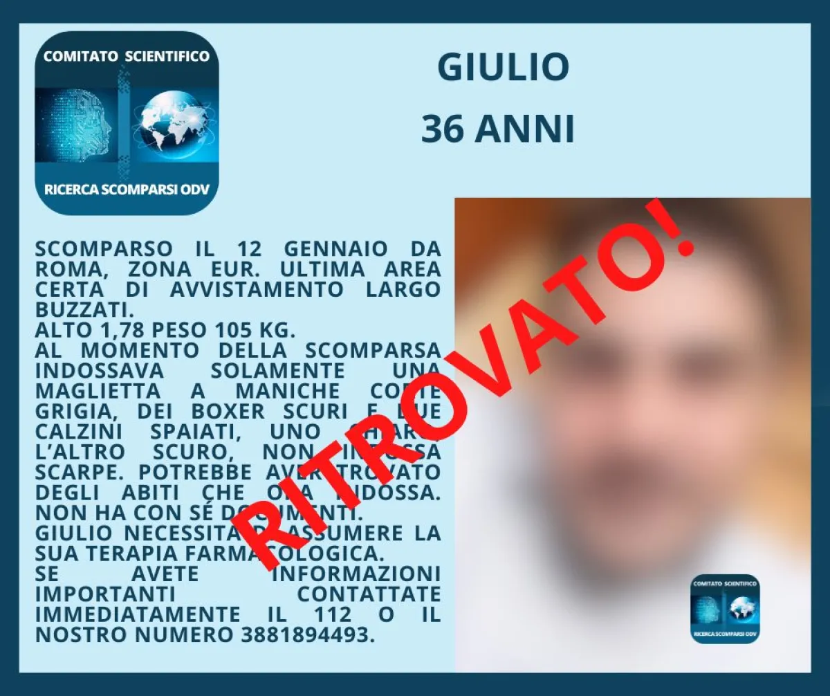 Sono ore di apprensione per Giulio, scomparso da Roma il 12 gennaio 2025.