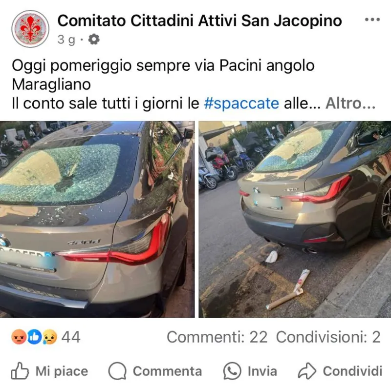 Tra furti, scippi, spaccio di droga, spaccate di auto e vetrine di negozi, occupazioni di stabili, gli abitanti del rione non si sentono sicuri. Alcuni esprimono il timore nel fare una semplice passeggiata mentre altri, soprattutto donne, dicono di evitare di uscire la sera. Sul profilo social del Comitato di San Jacopino i residenti mettono nero su bianco il loro malcontento sotto i vari post di denuncia. C'è chi invoca la presenza dell'esercito.