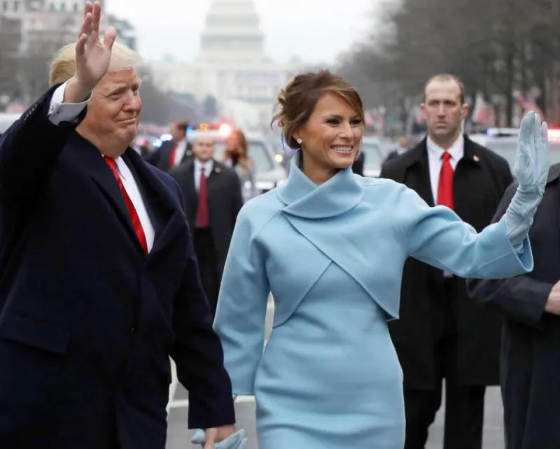 Per il 2017 fu Ralph Lauren a realizzare un cappotto e un abito in cashmere color polvere, un look che richiamava l’eleganza di Jackie Kennedy, considerata da molti un’icona di riferimento per Melania.