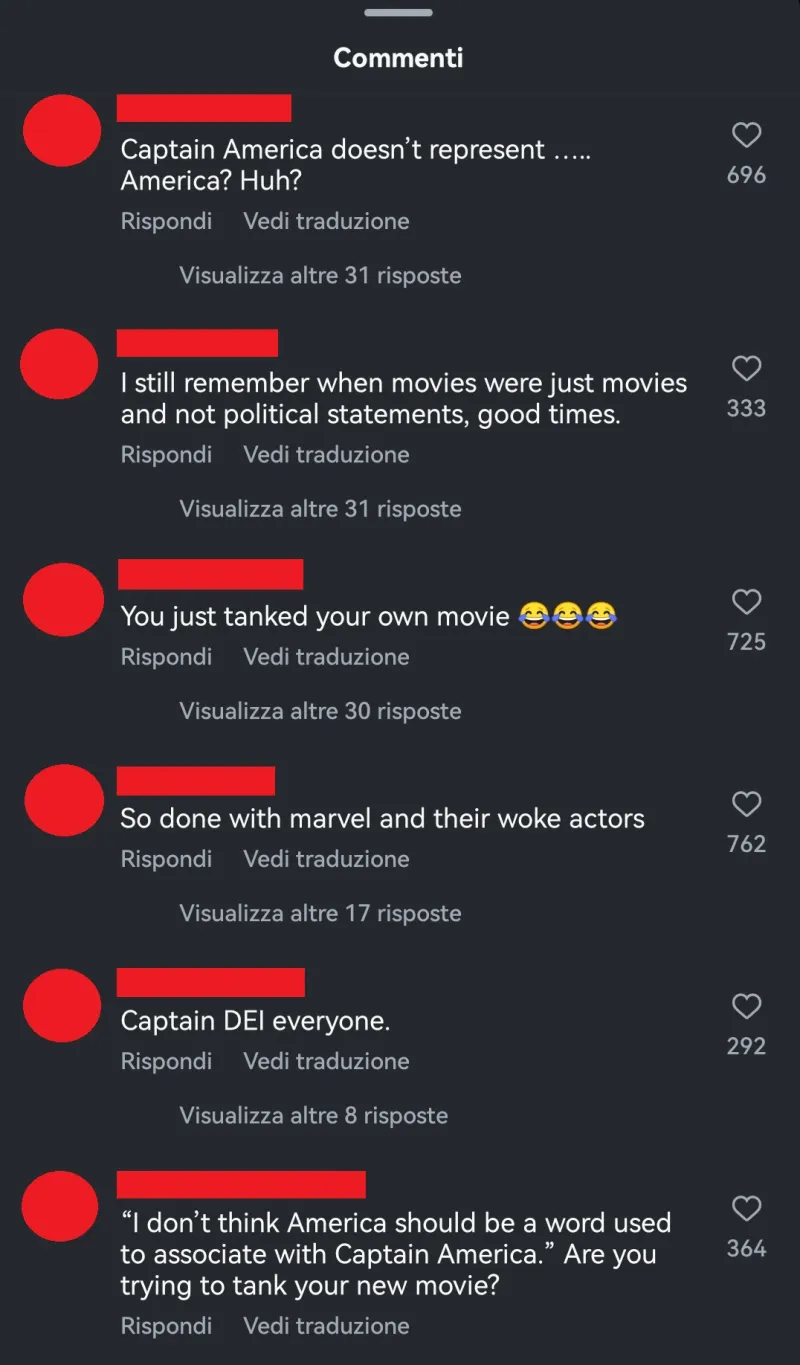 Affermazioni che sono state accolte, inutile dirlo, da un'ondata di critiche da parte di alcuni follower di Mackie, che sul suo profilo Instagram lo hanno accusato di "ideologia woke" e di sfruttare il personaggio per fare dichiarazioni politiche non richieste.