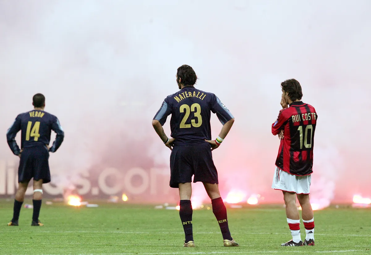 La situazione è degenerata al 71esimo, quando un gol annullato per l'Inter ha fatto scattare l'ira dei tifosi nerazzurri, che dalla Curva Nord hanno iniziato a lanciare oggetti in campo, tra cui anche fumogeni. È stato proprio questo il famoso match in cui il portiere rossonero Dida fu colpito da uno degli oggetti luminosi, costringendo l'arbitro a sospendere il match per circa 20 minuti. Alla ripresa il Milan continuò a controllare la partita, vincendo per 3-0.