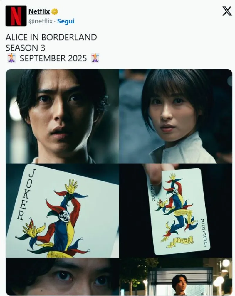 La terza stagione di Alice in Borderland debutterà su Netflix a settembre 2025.