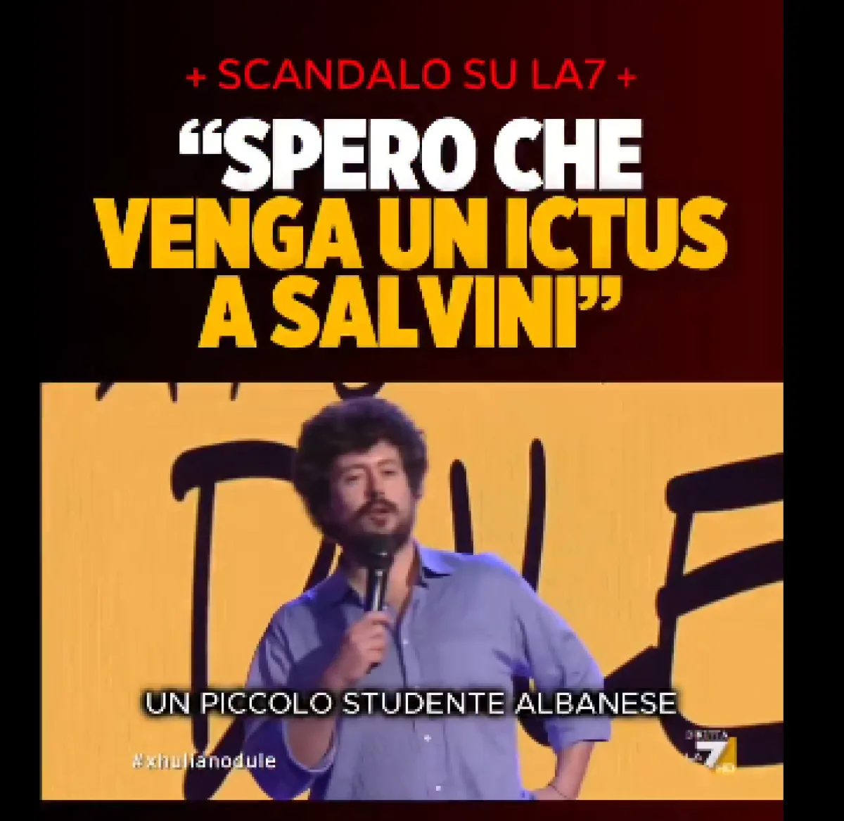Nella puntata andata in onda venerdì 21 febbraio, lo stand-up comedian italo-albanese si è lasciato sfuggire una battuta su un ictus al leader della Lega Matteo Salvini durante il suo monologo satirico. Una battuta infelice per la quale, poco dopo, il conduttore si è scusato con il vicepremier.
