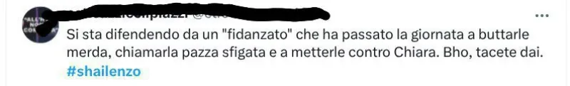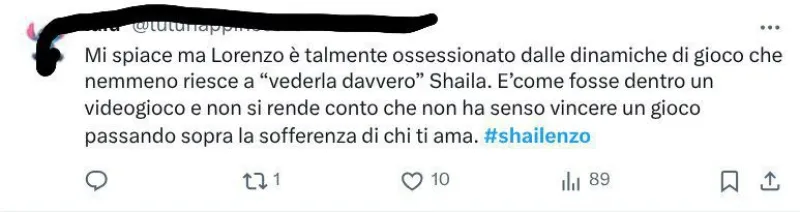 Alcuni tweet sono già a favore di Shaila e contro Lorenzo: