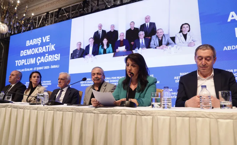 La delegazione del partito DEM ha condiviso il messaggio del leader del PKK, Abdullah Ocalan. Dopo 40 anni, Ocalan ha fatto un appello all’organizzazione affinché deponga le armi e si sciolga. "Invito al disarmo e mi assumo la responsabilità storica di questo appello", ha affermato Ocalan.