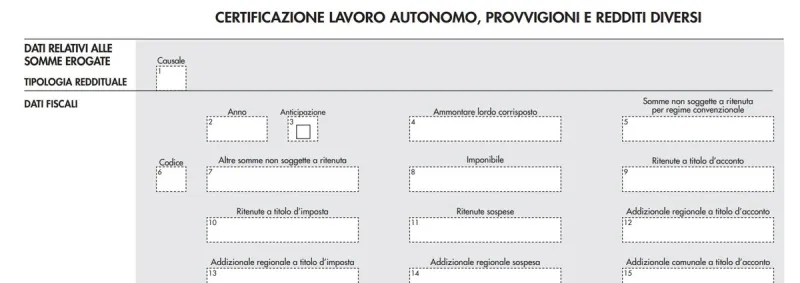 Successivamente, si deve passare alla parte relativa ai redditi Certificazione lavoro autonomo, provvigioni e redditi diversi.