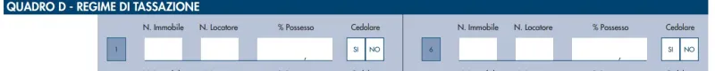 Infine, nel quadro E si devono indicare le eventuali locazioni con canoni differenti e il numero di annualità.