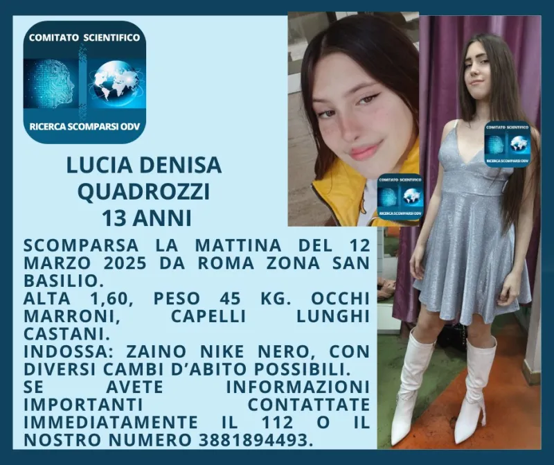 Sono ore difficili per i familiari di Lucia Denisa Quadrozzi, la tredicenne scomparsa da Roma il 12 marzo 2025 in circostanze allarmanti.