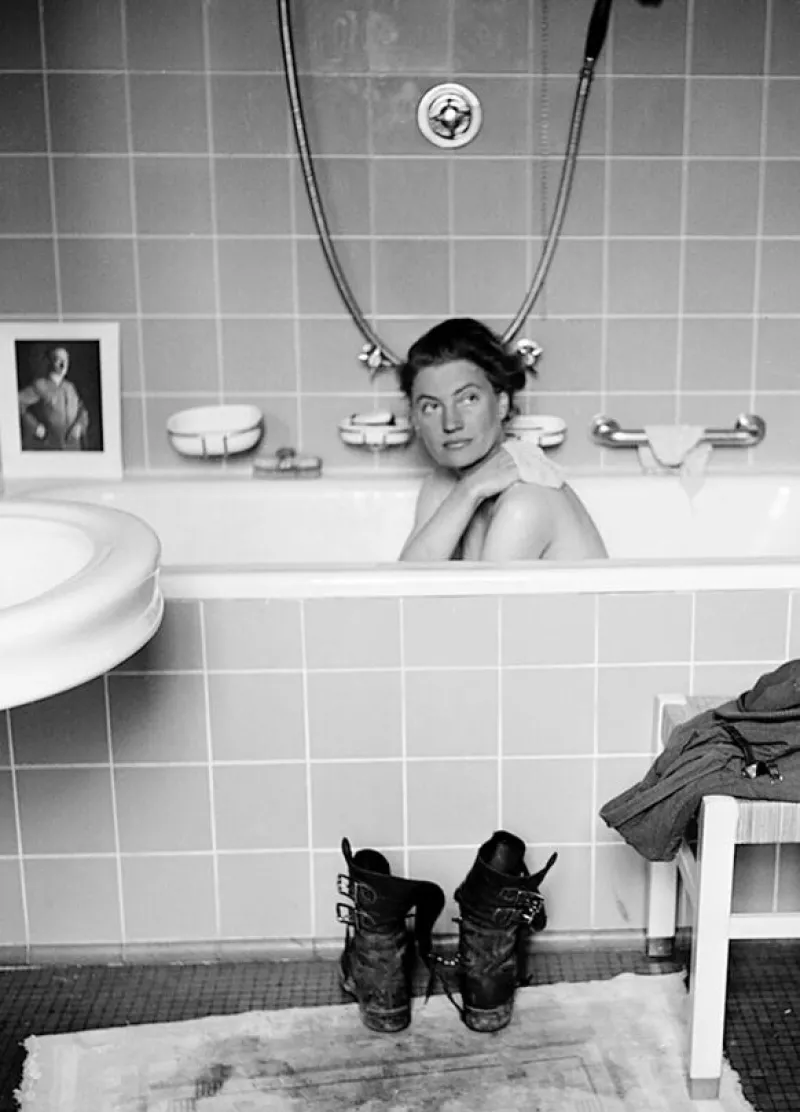 Uno degli scatti più celebri di Miller è quello in cui posa nella vasca da bagno di Hitler nel suo appartamento a Monaco, lo stesso giorno in cui il dittatore si suicidò.