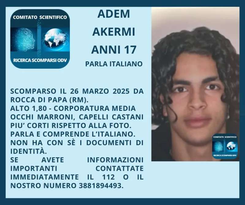 "Adem ha lasciato la struttura per minori lo scorso mercoledì," racconta un volontario del Comitato Scientifico Ricerca Scomparsi OdV.