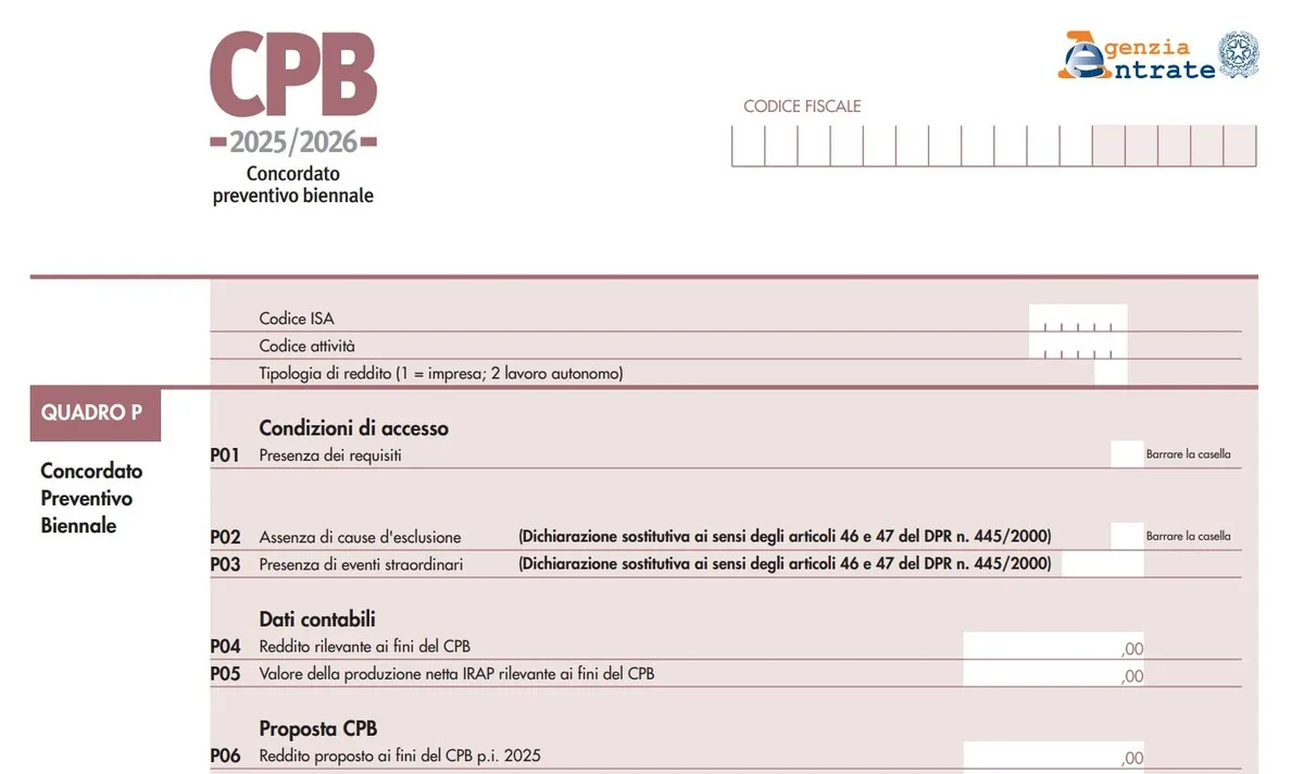 L'Agenzia delle Entrate ha approvato un nuovo modello CPB e le relative istruzioni di compilazione per la comunicazione dei dati necessari all'elaborazione della proposta di concordato preventivo biennale per i periodi d'imposta 2025 e 2026, con il provvedimento direttoriale del 9 aprile.