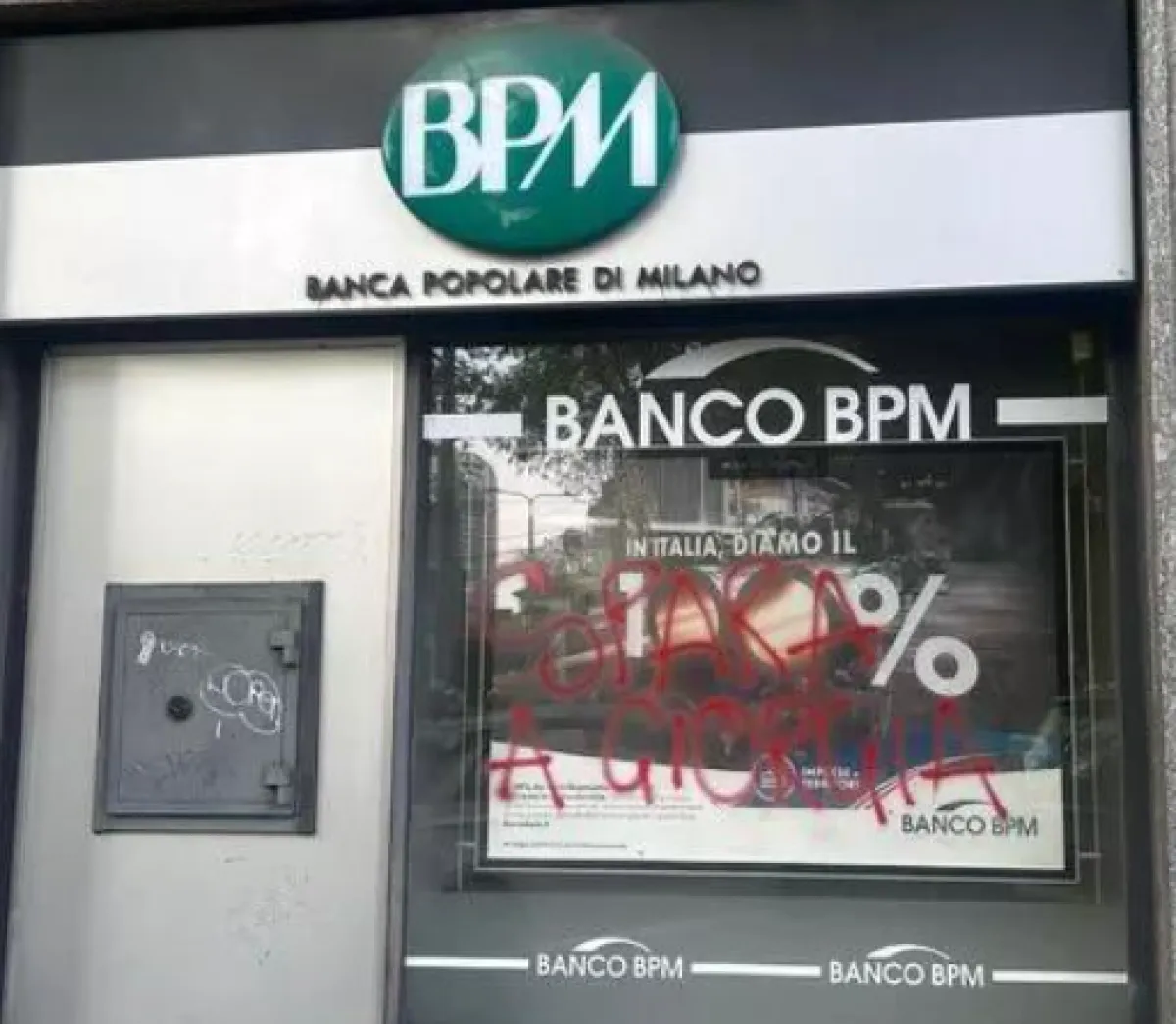 La scritta in vernice rossa, comparsa ieri – sabato 12 aprile - sulla vetrina di una banca in Piazzale Lagosta a Milano nel corso della manifestazione pro-Palestina, ha infiammato il già rovente scontro politico sul tema della sicurezza.
