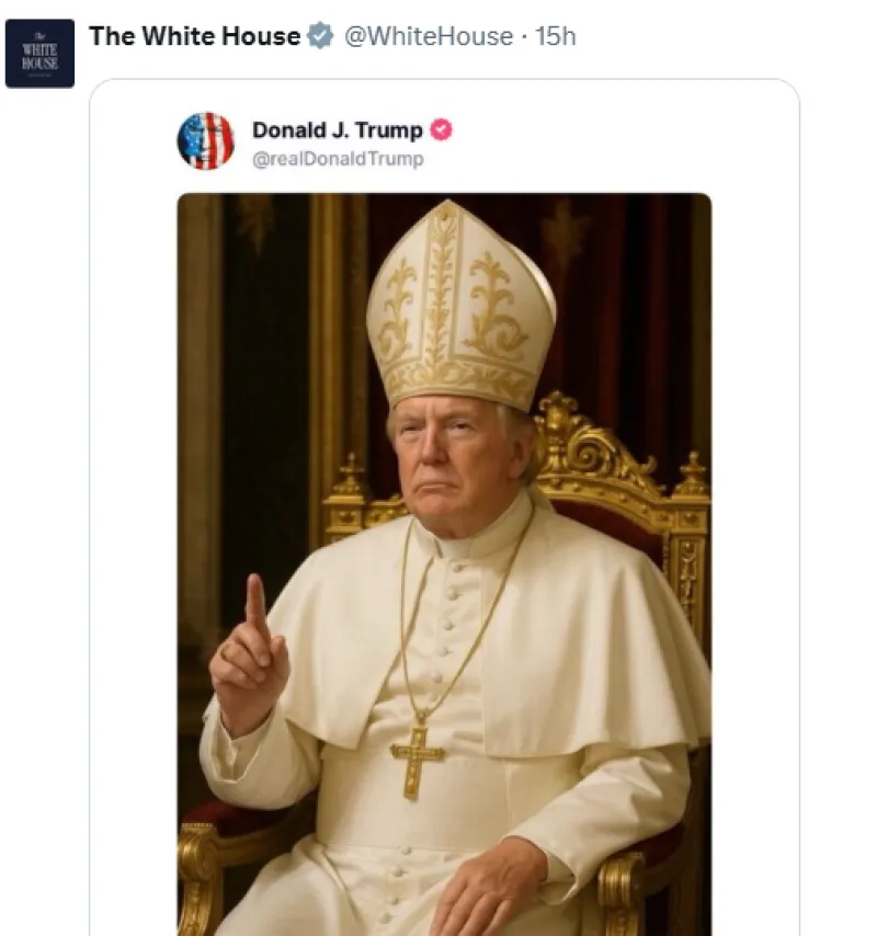 La Casa Bianca posta una foto generata con l'intelligenza artificiale di Donald Trump vestito da Papa, mentre il mondo è ancora in lutto per la morte del Santo Padre.