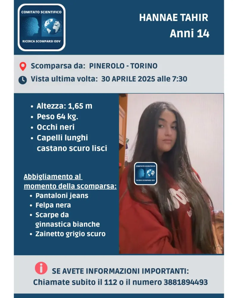 Sono ore di apprensione per Hannae Tahir, la quattordicenne scomparsa da Pinerolo, in provincia di Torino, il 30 aprile 2025 in circostanze allarmanti.