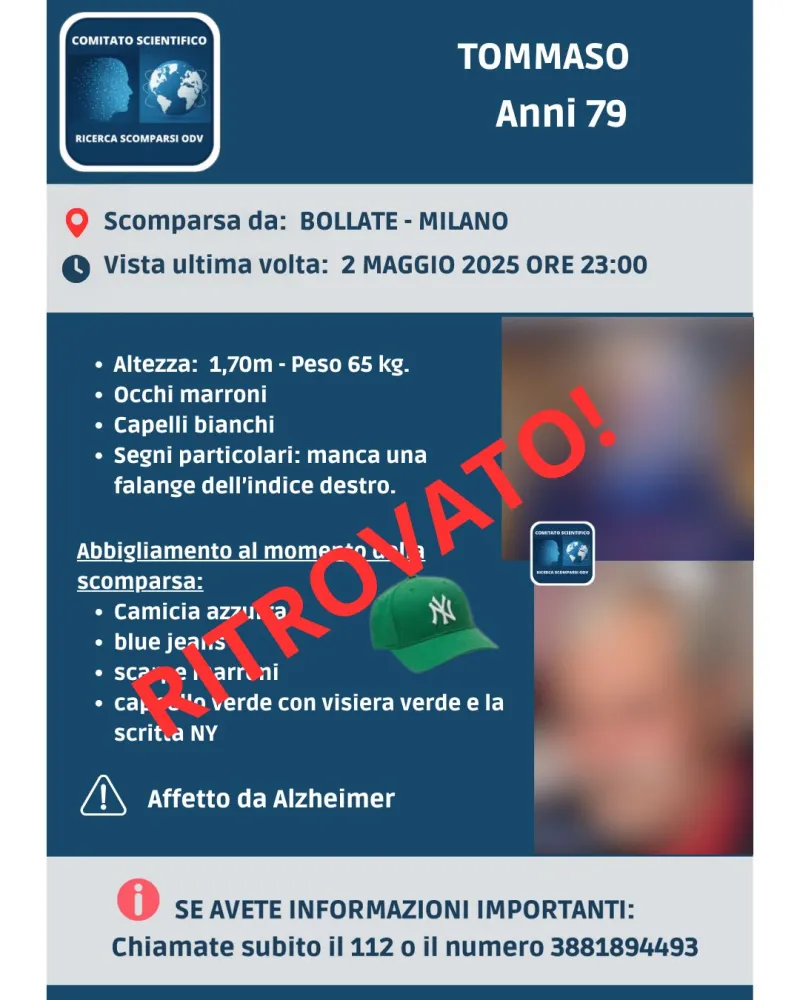"L’anziano si trovava a Novate Milanese. Grazie a Dio, le squadre di soccorso sono arrivate in tempo: hanno lavorato alacremente per consentirgli di riabbracciare la sua famiglia".