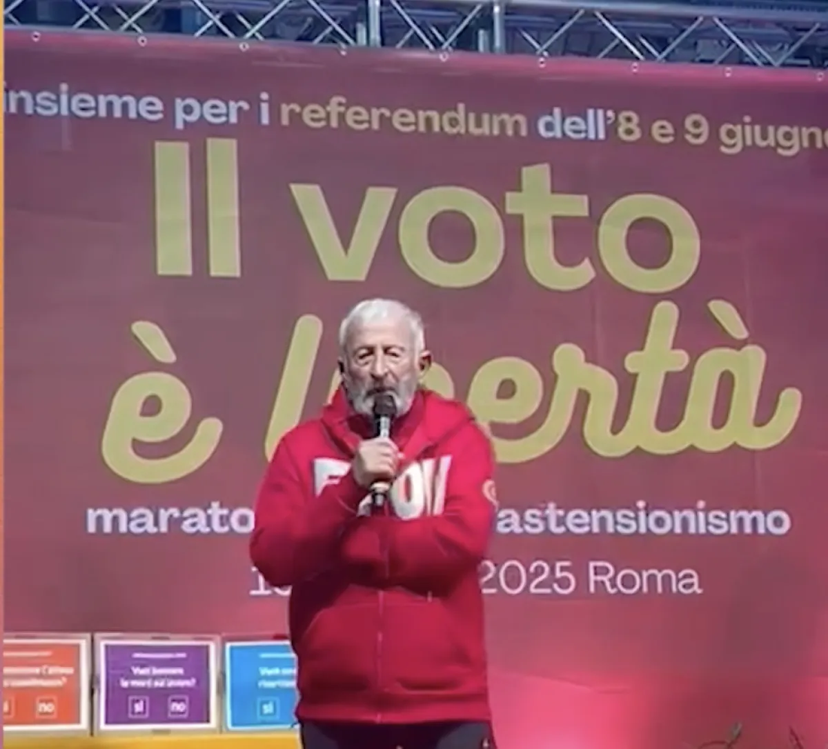 Nel corso dell'evento, ci sono stati diversi interventi sul palco – tra cui quello di Adelmo Cervi, finito nell'occhio del ciclone. Lo scopo dell'evento è quello di promuovere la partecipazione in vista del voto ai quesiti referendari del prossimo 8 e 9 giugno.