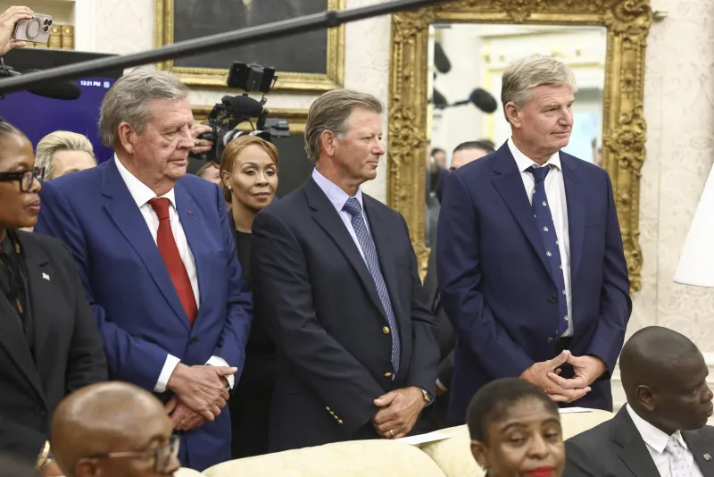 Forse anticipando uno scenario simile a quello che è accaduto con Zelensky, Ramaphosa ha portato con sé anche le leggende del golf sudafricano Ernie Els e Retief Goosen.