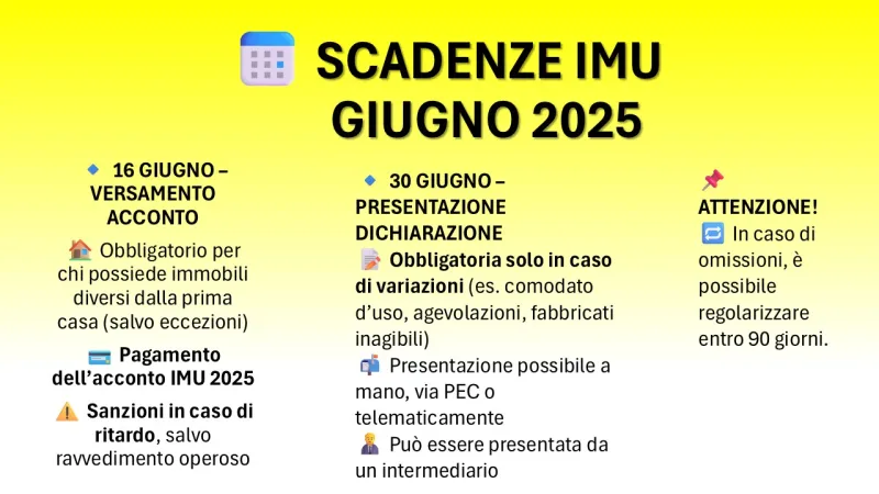 Nel mese di giugno 2025, è previsto un doppio appuntamento con l’Imu, fissato per lunedì 16 e lunedì 30.