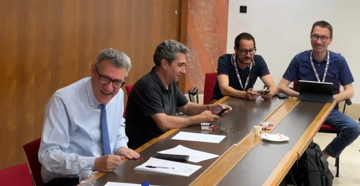 Anzi: il segretario rideva proprio assieme agli altri componenti della sua segreteria. Tant'è che un operatore gliel'ha fatto notare: "Segretario, è sorridente..." E lui: "Certo! Sorridente..."