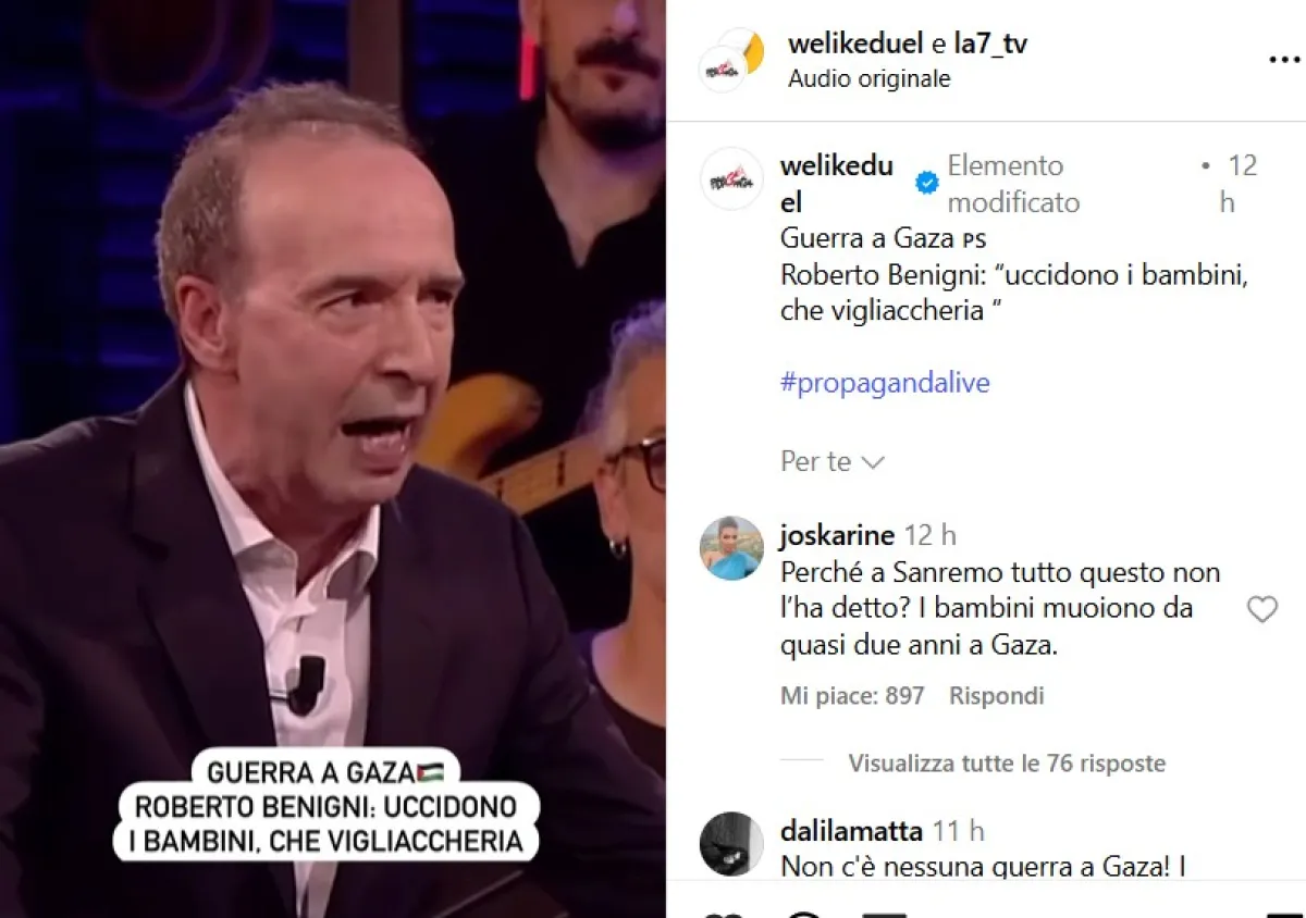 Non è passata inosservata l'ospitata di ieri sera a Propaganda Live di Roberto Benigni: l'attore, parlando dei conflitti in Ucraina e a Gaza e dei morti nel Mediterraneo si è scagliato contro i responsabili delle stragi degli innocenti:
