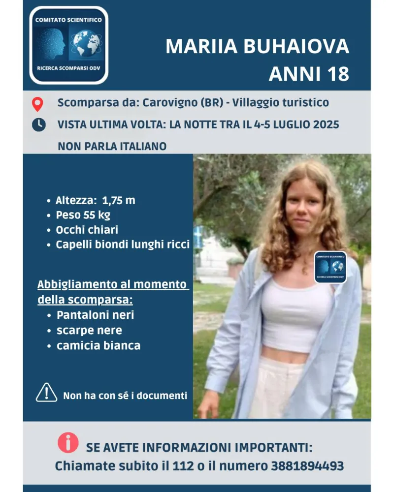 Proseguono le ricerche di Mariia Buhaiova, la 18enne scomparsa da Carovigno, in provincia di Brindisi, lo scorso 4 luglio 2025.