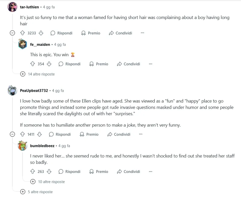 C’è persino chi ha trasformato la clip in uno sketch da "mean girls": con Ellen nella parte della bulla di scuola che prova a fare la spiritosa… ma finisce mangiata viva da quella con la vera classe.