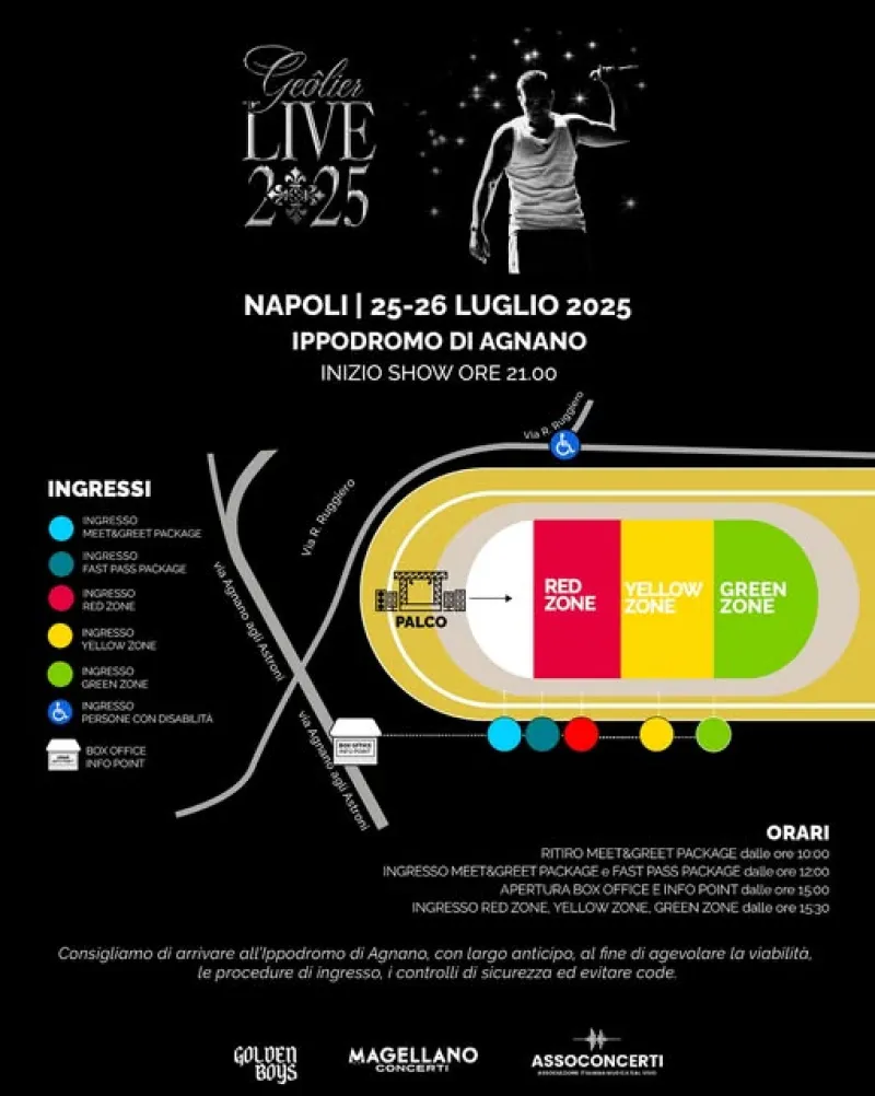 Ricordiamo che l'Ippodromo di Agnano ha una capienza di 16mila persone, che la prima data è sold out mentre per la seconda è possibile acquistare i biglietti su Ticketone e nelle rivendite autorizzate. Ecco anche la possibile scaletta dei concerti di Geolier a Napoli: