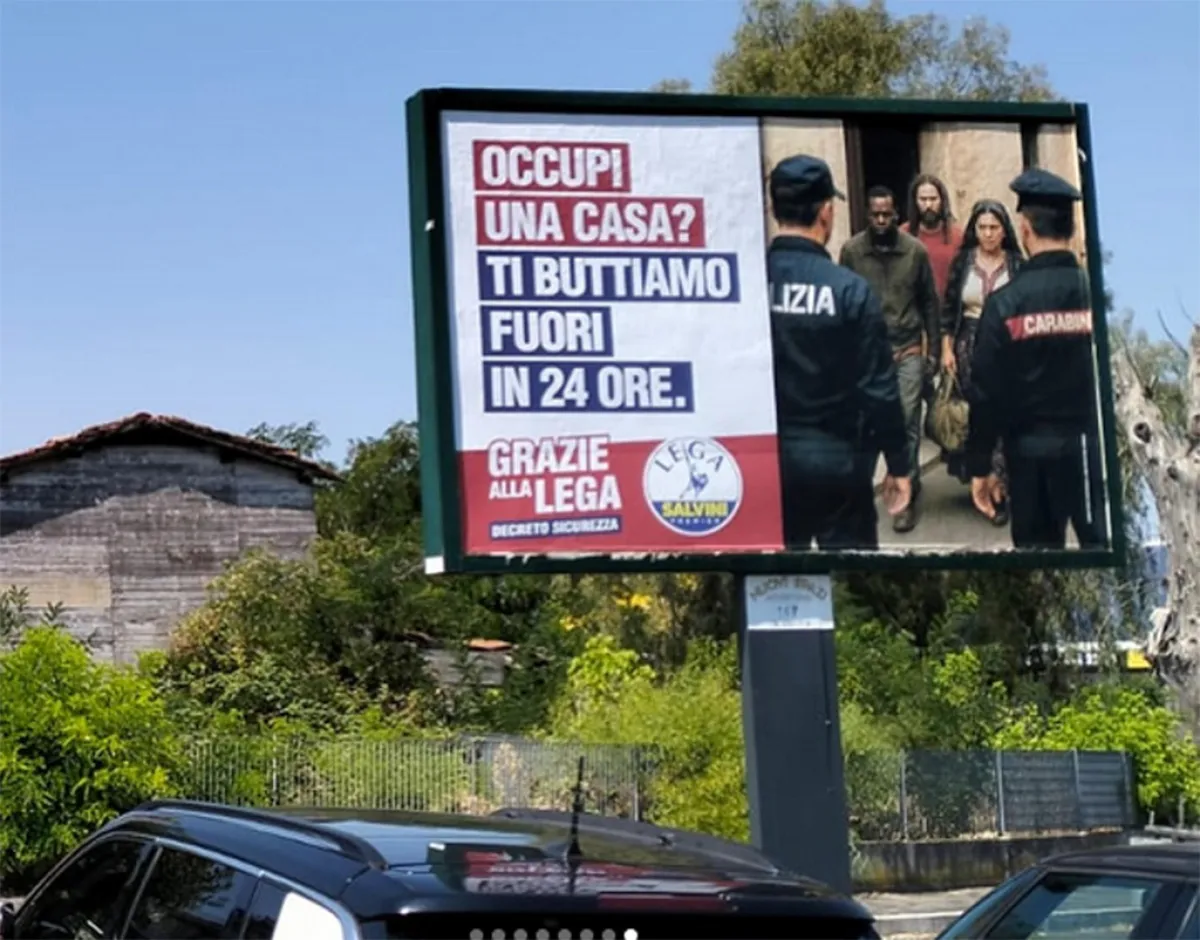 Sui manifesti in questione comparivano infatti personaggi stereotipati, che avrebbero dovuto rappresentare occupanti abusivi, manifestanti e altre categorie interessate dalle controverse misure introdotte dal governo Meloni. A meno di ventiquattro ore dall'affissione, alcuni dei cartelloni sono stati imbrattati con vernice rossa, gesto che ha provocato l'indignazione del leader leghista Matteo Salvini.