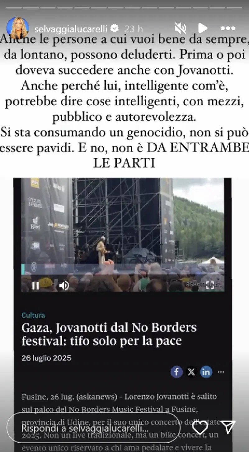 Lucarelli non si è fermata a Jovanotti. Nei suoi post e nelle storie su Instagram, ha allargato la critica a molti altri volti noti del mondo dello spettacolo e della cultura, accusati di "non esporsi abbastanza".