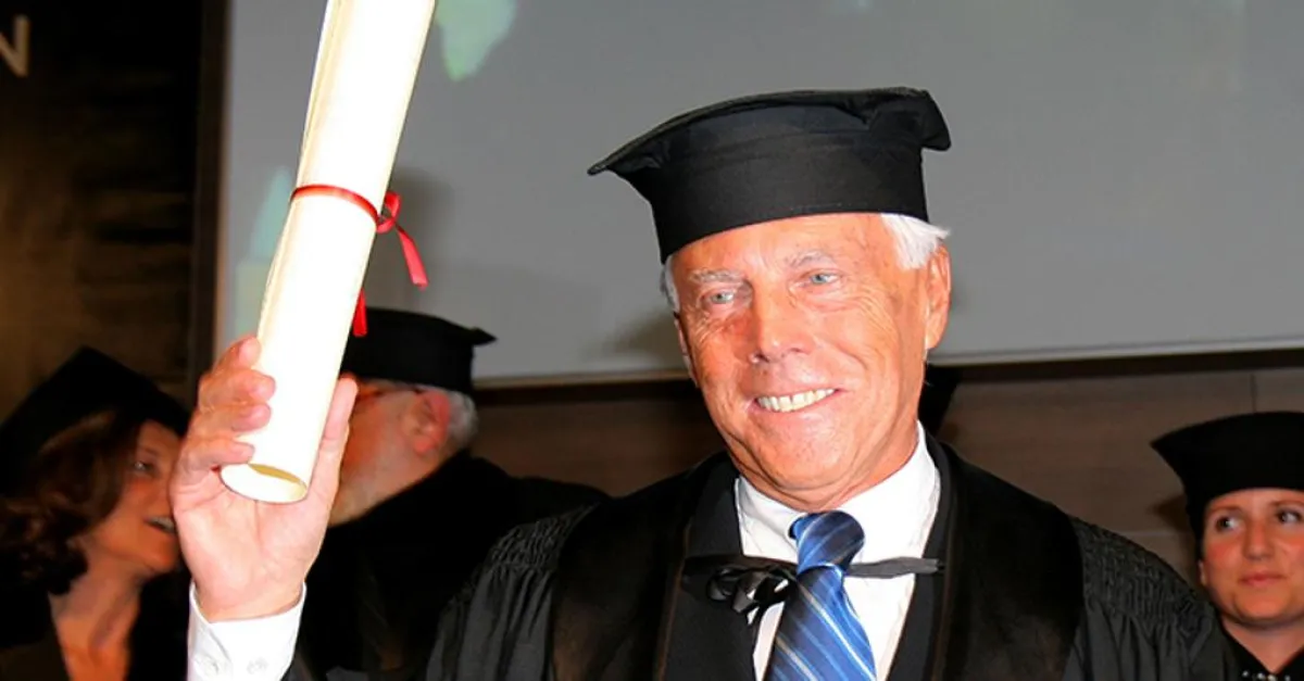Giorgio Armani, diplomato al liceo scientifico, non si è laureato all'università, ma ha ricevuto 5 lauree honoris causa per il suo lavoro da stilista e imprenditore.