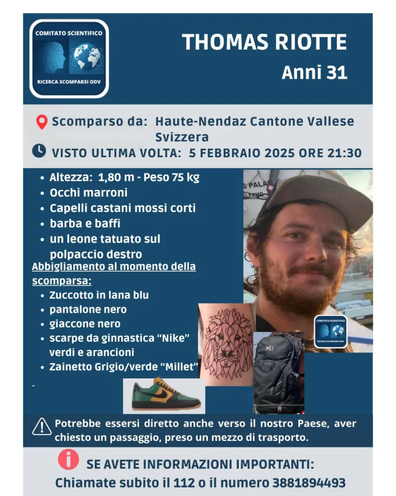 Sono trascorsi sette mesi dalla scomparsa di Thomas Riotte, avvenuta lo scorso 5 febbraio 2025 a Haute-Nendaz, comune svizzero situato nel Canton Vallese, nel distretto di Conthey.