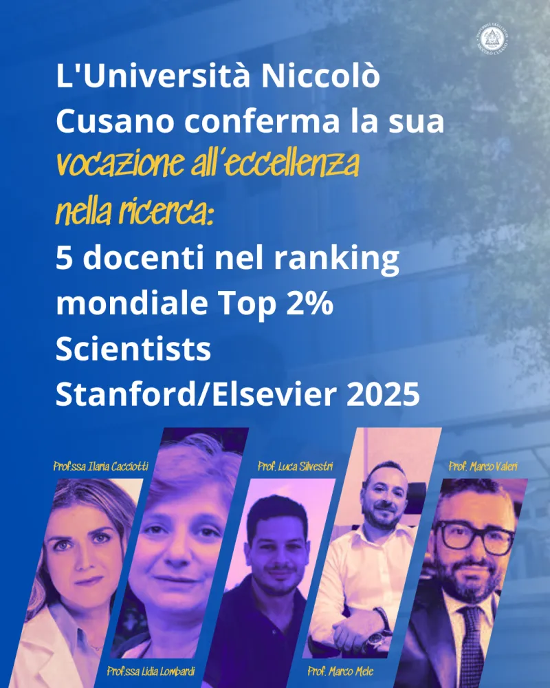 L'Unicusano conferma la sua vocazione all’eccellenza nella ricerca: 5 docenti nel ranking mondiale Top 2% Scientists Stanford/Elsevier 2025.