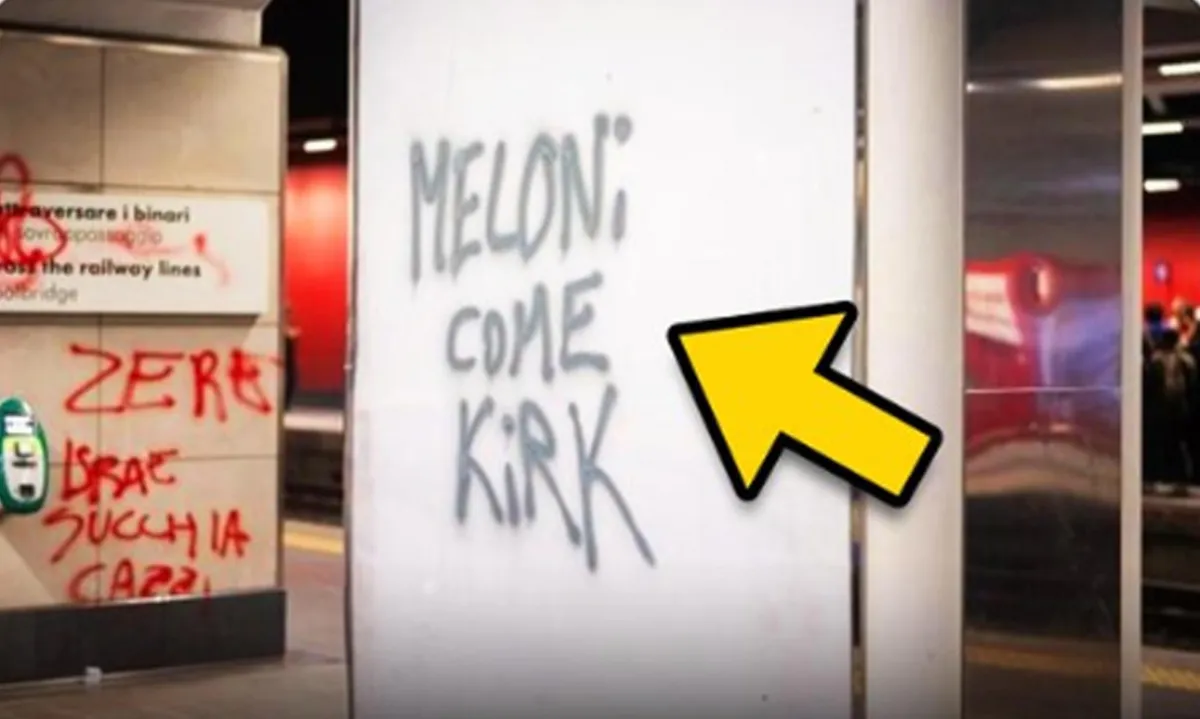 Su un muro di Torino, è apparsa la scritta "Meloni come Kirk". In pratica, le si augurava di fare la stessa fine dell'attivista statunitense di estrema destra ucciso mentre teneva un comizio in un campus universitario.