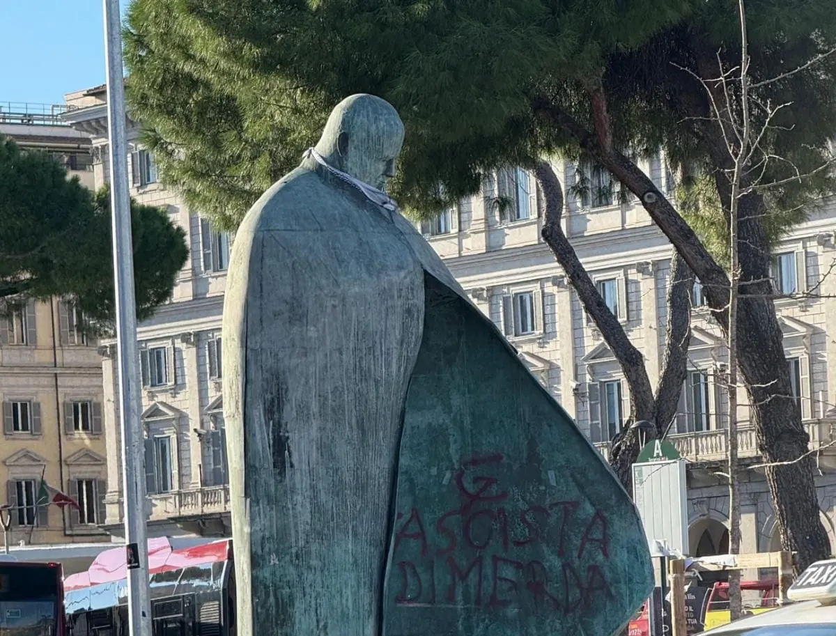 La statua di Wojtyla profanata a Termini dai Pro Pal spacca il Vaticano
