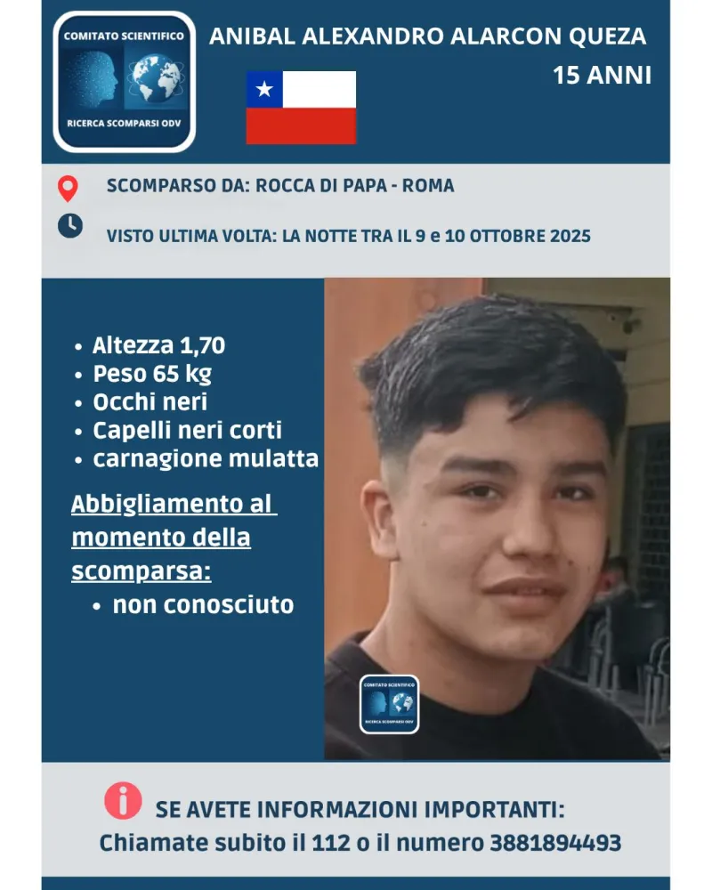 Sono ore di preoccupazione per Anibal Alexandro Alarcon Queza, scomparso da Rocca di Papa, tra il 9 e il 10 ottobre 2025.