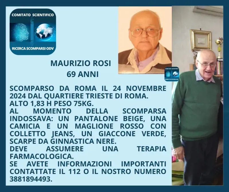 "Se lo vedete, chiamate tempestivamente il servizio d'emergenza al 112 o il Comitato Scientifico Ricerca Scomparsi OdV al +39 388 189 4493", conclude.