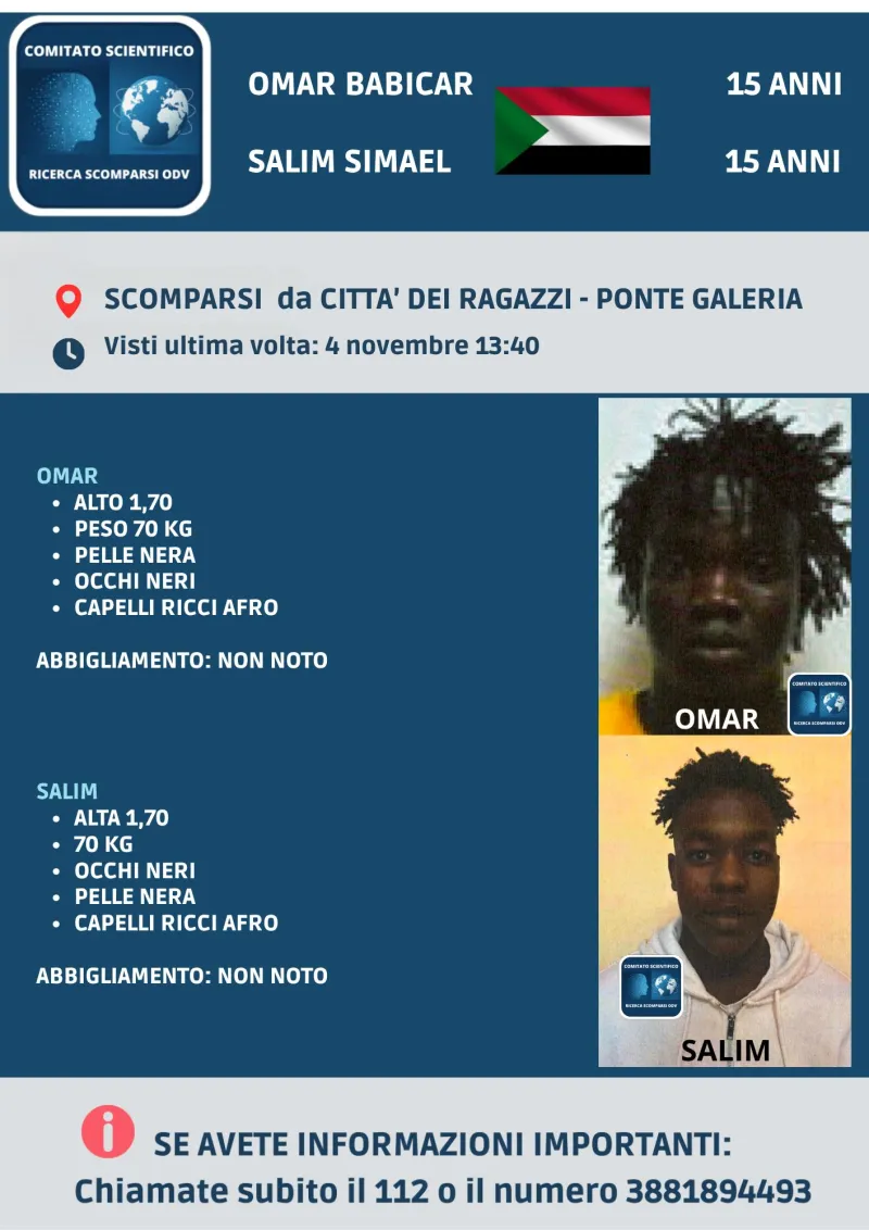 Sono ore di preoccupazione Roma, dove due ragazzi di appena 15 anni, Omar Babicar e Salim Simael, risultano scomparsi dalla struttura “Città dei Ragazzi” di Ponte Galeria.