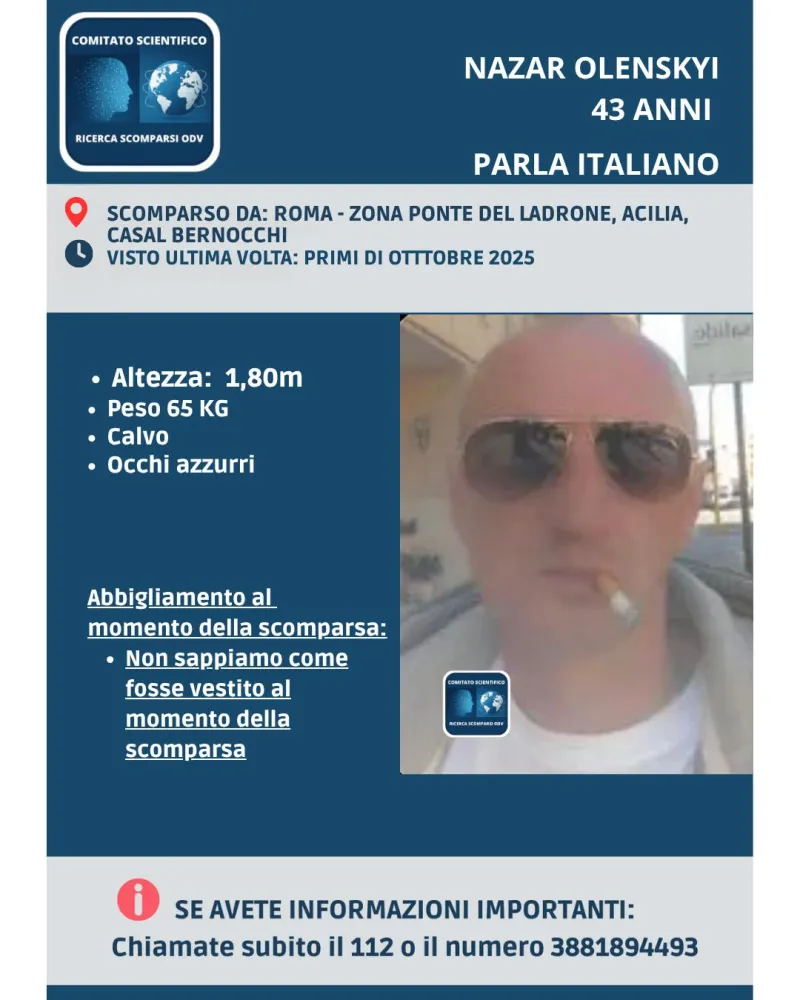 Sono giorni di angoscia a Roma, nella zona compresa tra Ponte del Ladrone, Acilia e Casal Bernocchi, per la scomparsa di Nazar Olenskyi.